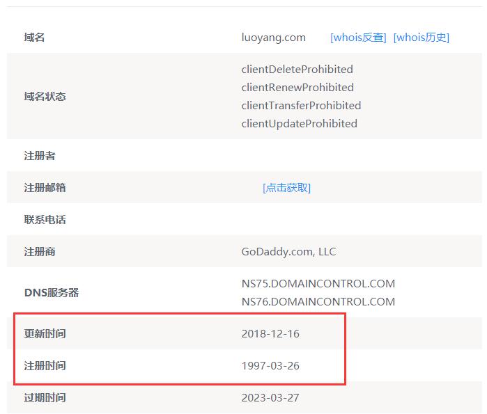 域名luoyang.com的注冊時間為1997年,至今已有21年之久。但從域名的品相來看,雙拼域名luoyang.com所能對于的中文含義相當有限,其中最有價值的含義就是“洛陽”。通過whois查詢發(fā)現(xiàn),域名luoyang.com最新一次更新時間發(fā)生在2018年12月16日,但其他的具體信息皆未能查詢到。