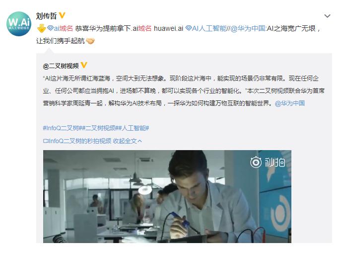 近日據域名投資人@劉傳哲在微博上的曝料,華為公司已經提前拿下.ai域名 huawei.ai。目前域名已經設置跳轉到華為的官網huawei.com。