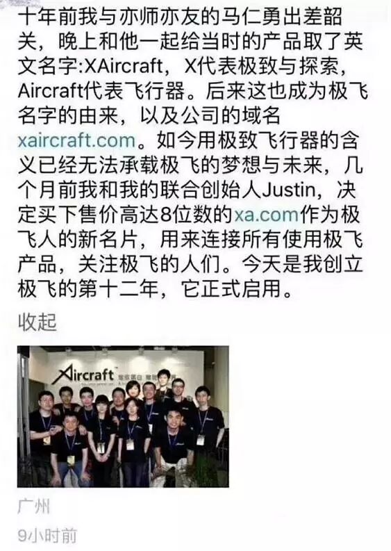 近日,極飛科技創始人在朋友圈發布消息,對外宣傳極飛科技已在不久前斥資收購了價值高達8位數的極品域名XA.com,目前已正式啟用!