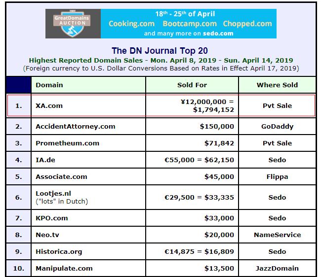 但隨著新一期DN榜發布,XA.com域名的真實成交價格終于曝光,高達人民幣1200萬元,領銜榜首。