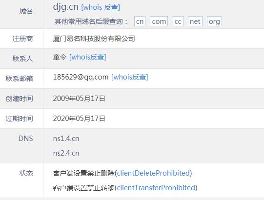 查詢發(fā)現(xiàn)djg.cn注冊于2009年5月,至今已有將近10年的時間,從含義上看,djg.cn有“第幾個、等級高、低價股、電教館”等含義,簡短好記且便于輸入,在應(yīng)用上適用于股票、電玩、教育、社交等行業(yè),具有很高的投資價值和商業(yè)應(yīng)用價值。